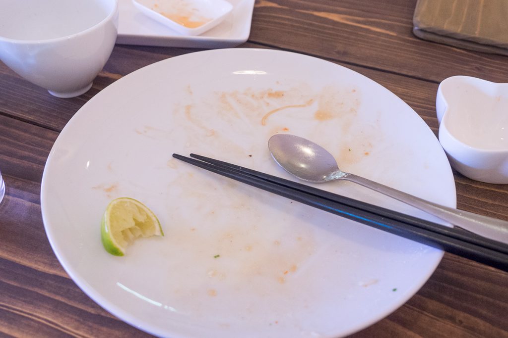 テーブルに置かれているスパイスは左上から砂糖、ナンプラー、炒ためた唐辛子、酢漬けの唐辛子だそうだ。砂糖といえばバッタイには砂糖がかかっていたりするけど、ここにはメニューにないけど、汁麺にもいれたりするんだろうか?