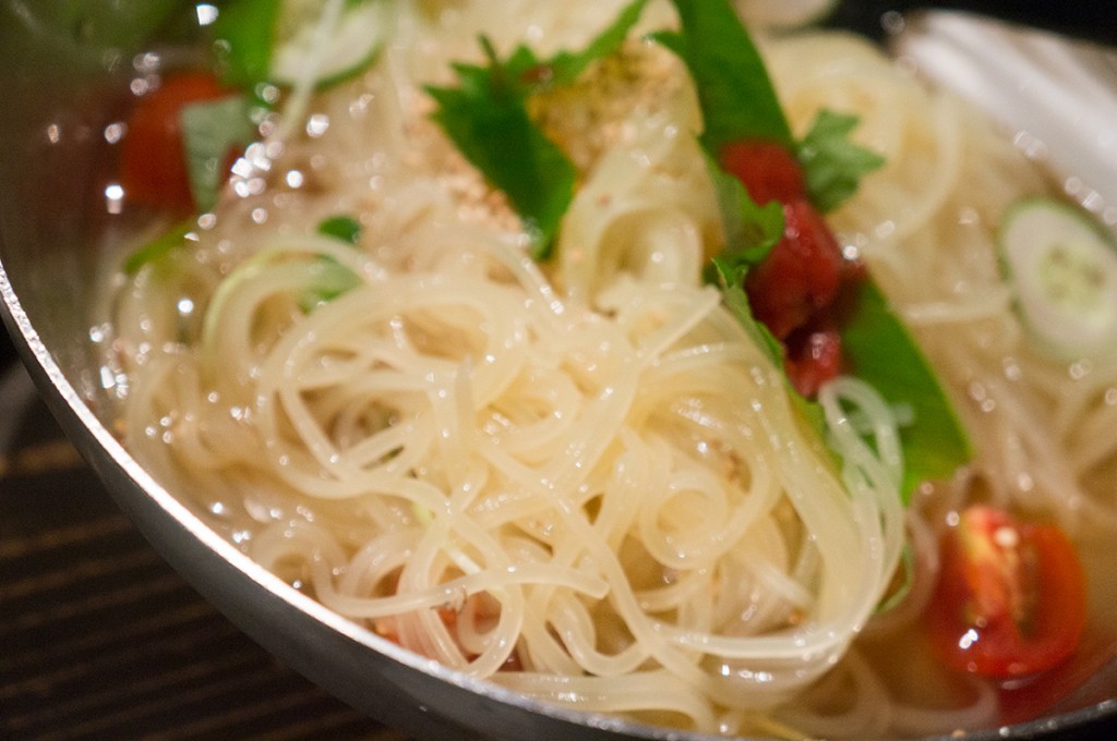 冷麺は、すっきり酢醤油とさっぱり梅味の2種類。