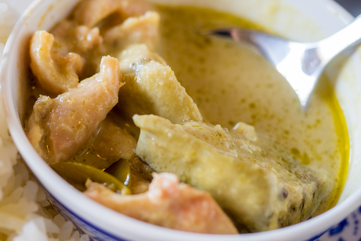 グリーンカレーは甘みもあってスパイシーだけど、レッドは甘みが強めで、これも美味い。グリーンカレーのチキンとナスもいいし、レッドの海老もいける。