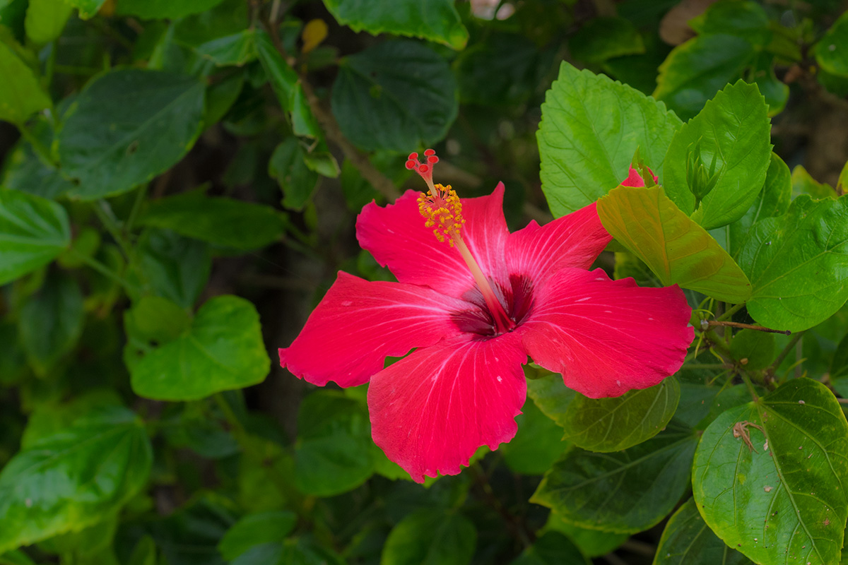 集落の中にはハイビスカスを始めいろんな花も咲いている。