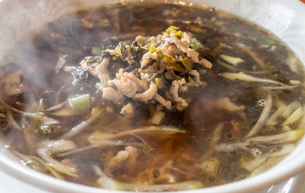孔雀楼で高菜ラーメン、五目焼きそばに餃子。
