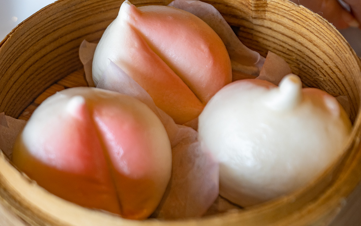 桃まんの中はあんじゃなくてカスタードクリームだ。