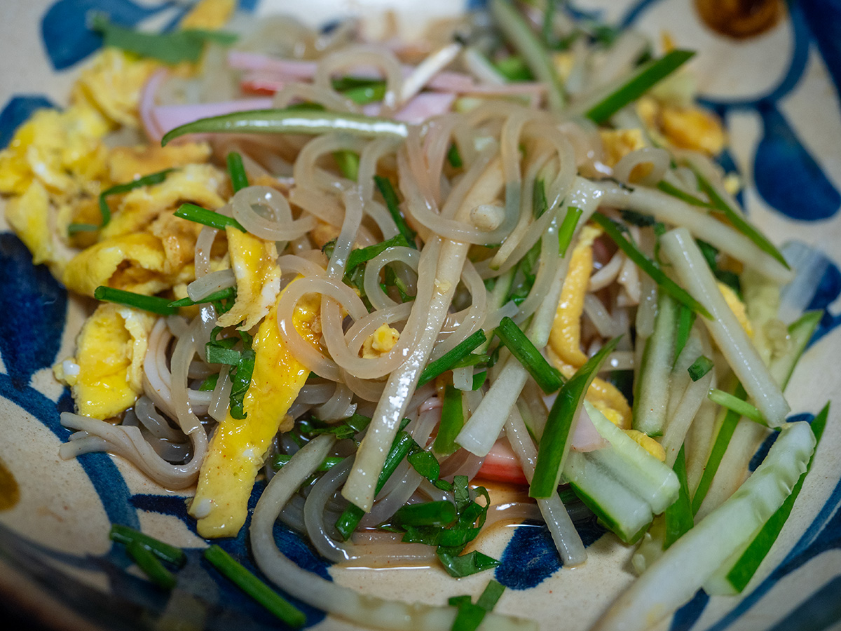 で、盛岡冷麺の2玉目は、2分ちょいゆでてから流水で洗い冷水でしっかりしめたのでこの方が麺は柔らかいけどしっかり弾力があって美味い。