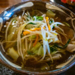 真壁ちなーの野菜そばapril 9th tue. 2024 九州から昔の仕事仲間がやってきたので、空港へ迎えに行きそのまま真壁ちなーへ。 22年ぶりに去年の10月にやってきたから今度は半年ぶりか。 15時半くらいだったのでかなり売り切れだったけどひとまずはそばがいくつかある。 私は野菜そばにしてみた。野菜そばの小770円。やっぱり小で十分なサイズだ。 もやしやキャベツ、にんじん、ニラなどが盛ってある。 ちょっと濃いめだけど、あっさりスープと歯応えのよい中細麺が絡んで美味い。 ソーキを食べたかったようだけど、売り切れなので三枚肉そば。 ソーキは違う店で食べさせてあげよう(^ ^ 真壁知なーの過去記事:三枚肉そばの小と小鉢セット┃ 茶処…