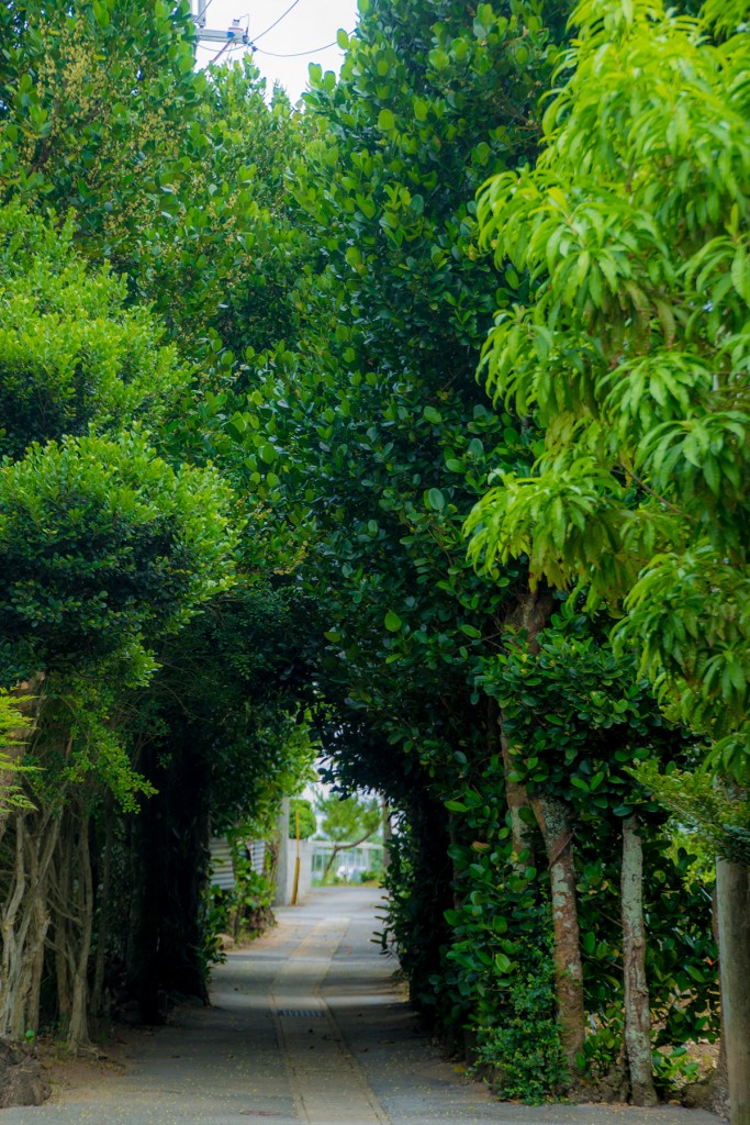 汀間の集落のフクギ並木も素敵だなぁ。ほとんど人も通らない道を歩くのは気持ちいい。