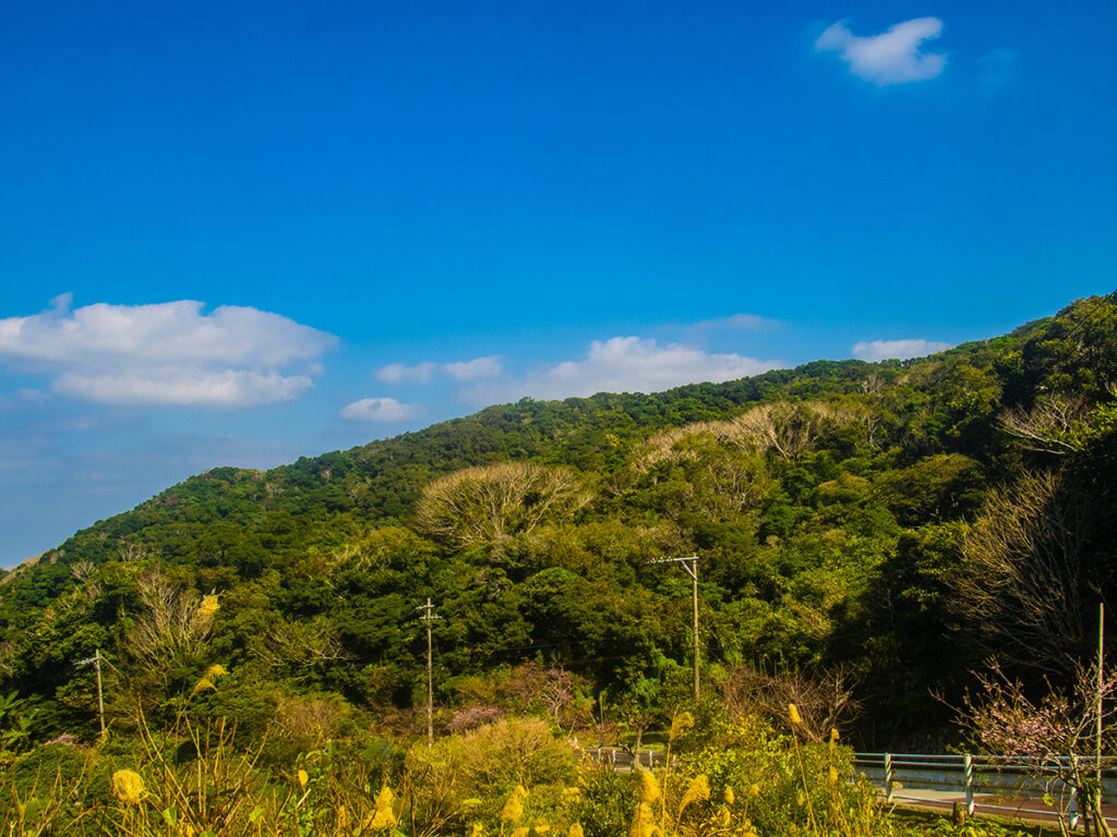 ヘゴやヤシと一緒に見られるのも沖縄ならでは。時にヒマワリとも一緒だったり。