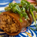 dec.24th sun.2023 ライカムの北海道展で買った北海道森町名産いか道産子めしを湯煎して大葉を。 いかめしは、ゲソとワタを取り、米を詰め込んだイカを醤油・みりん・酒・砂糖で煮込んで味付けした北海道森町の郷土料理。 2尾入って902円。ライズ北海道では6尾で送料込み3080円とある。・・・・が、 沖縄県は別途、送料2,700円とある(^ ^; 本体価格と同じくらいか・・ いかに詰まった味の染みた餅米がふっくら美味い。 島らっきょうにもよくあうね。 北海道森町名産 いか道産子めし でも同じ北海道産でも送料無料のもあるんだ。 いかめし…