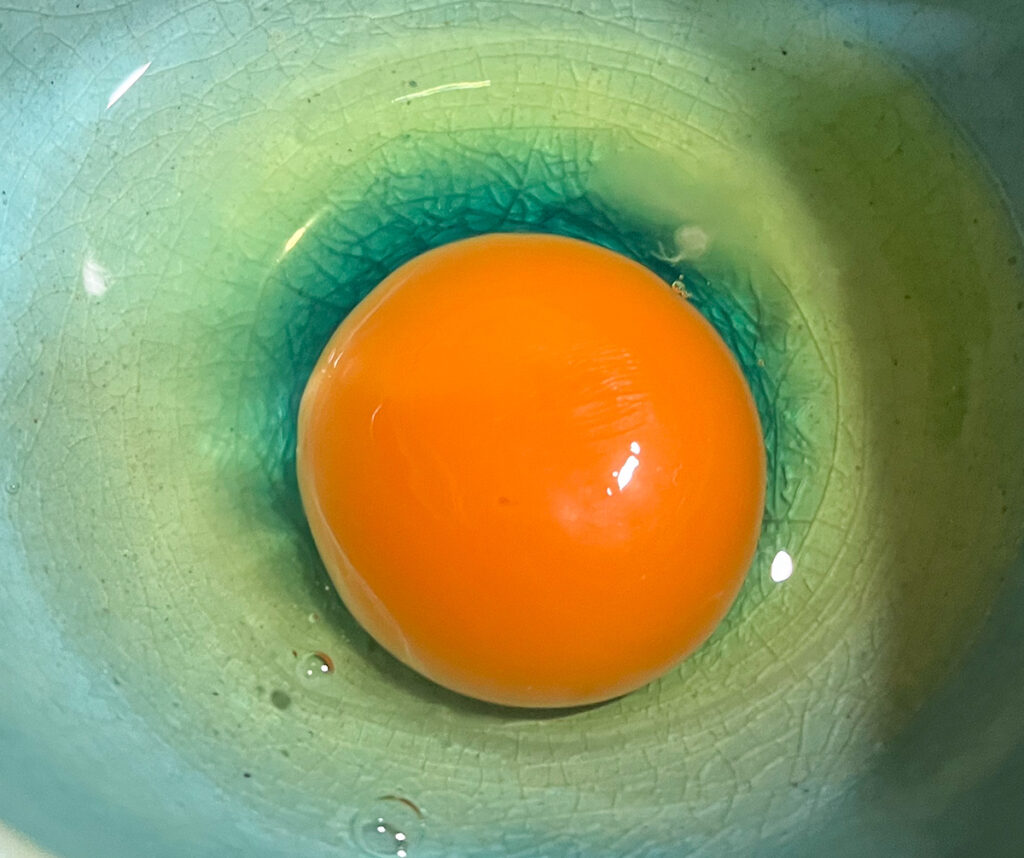 卵を割ったらとても綺麗で鮮やかな黄身が姿を現した。