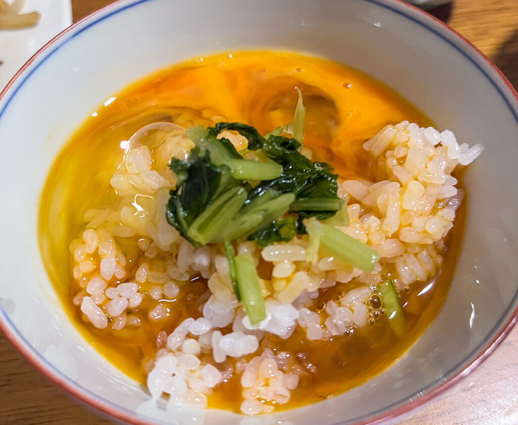 少量の醤油をかけて混ぜ、ちょっぴり漬物を載せて食べると何とも幸せだ(^ ^