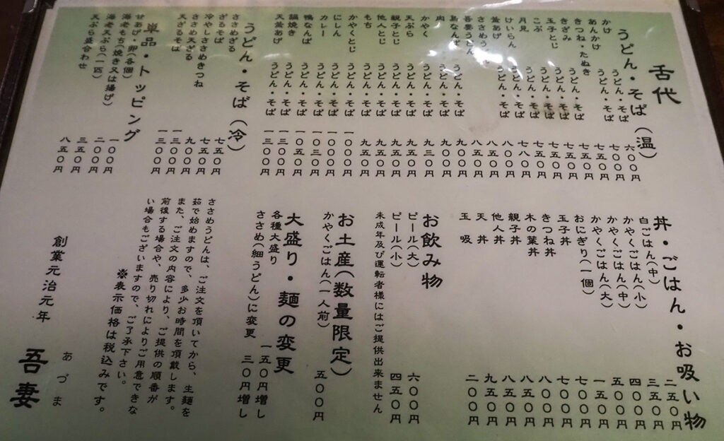 高校卒業して沖縄に来る前に住んでいた池田市にある創業元治元年(1864年)の大阪うどんの吾妻。今年で創業161年になるんじゃないか。