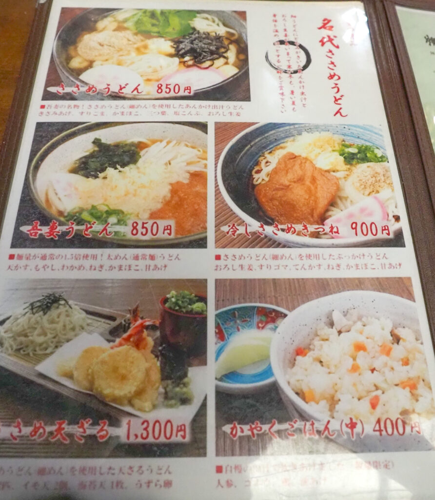 メニューは割と豊富。でもやっぱり名代ささめうどんかな。