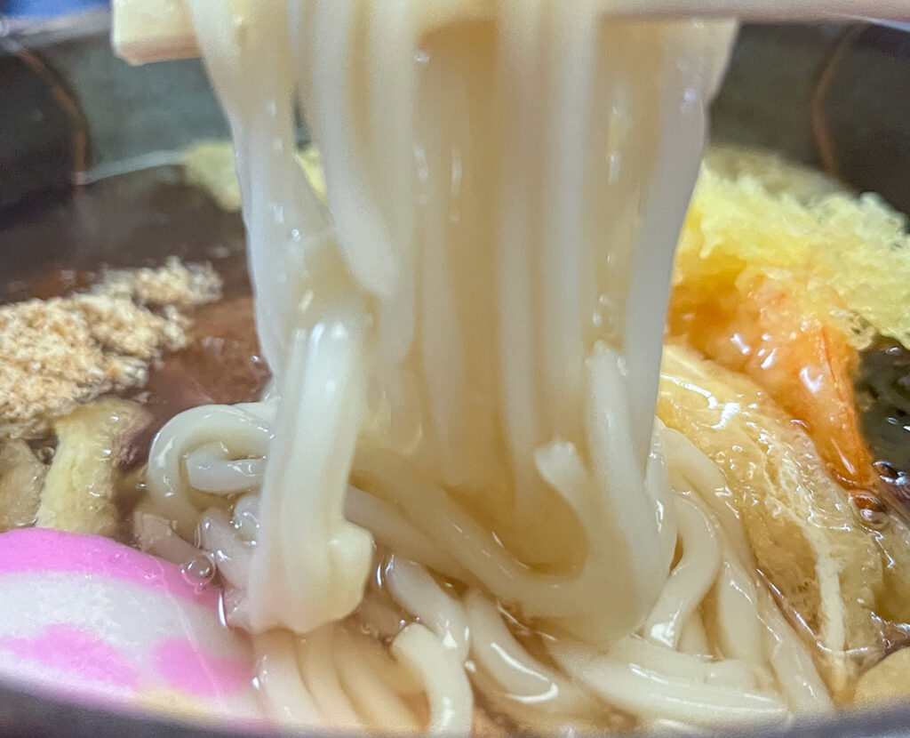 ちょっと細目のうどんに強めのあんが絡んで美味い麺と汁。