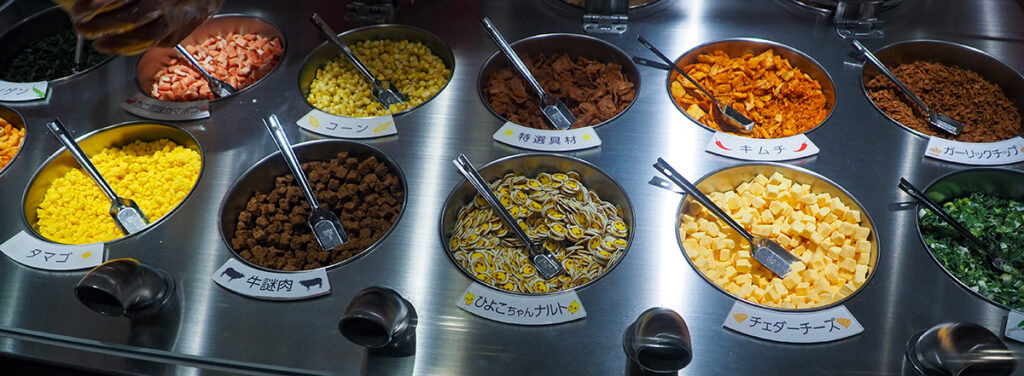 この中から4種類の具材を選ぶとカップヌードルにトッピングしてもらえる。