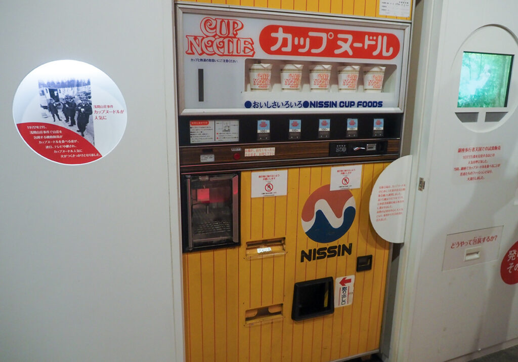カップヌードルにお湯をいれる自販機もあったんだ。そういえば、昔は生うどんとかもお湯を入れて作れる自販機あったよなぁ。