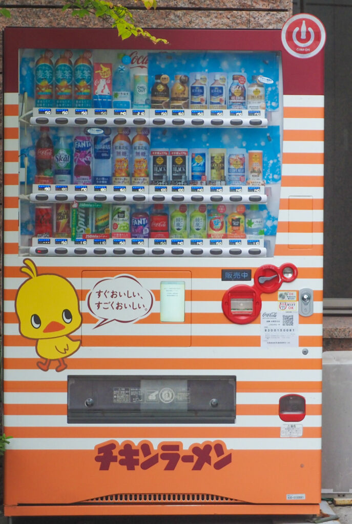 入り口近くの自販機は売ってるのはジュース類ではあるけど自販機はチキンラーメン仕様だ。