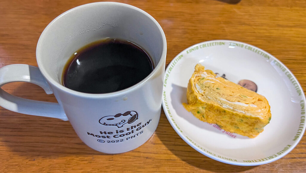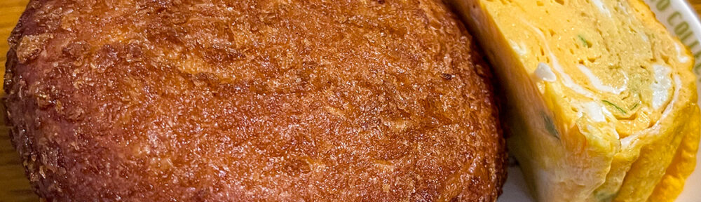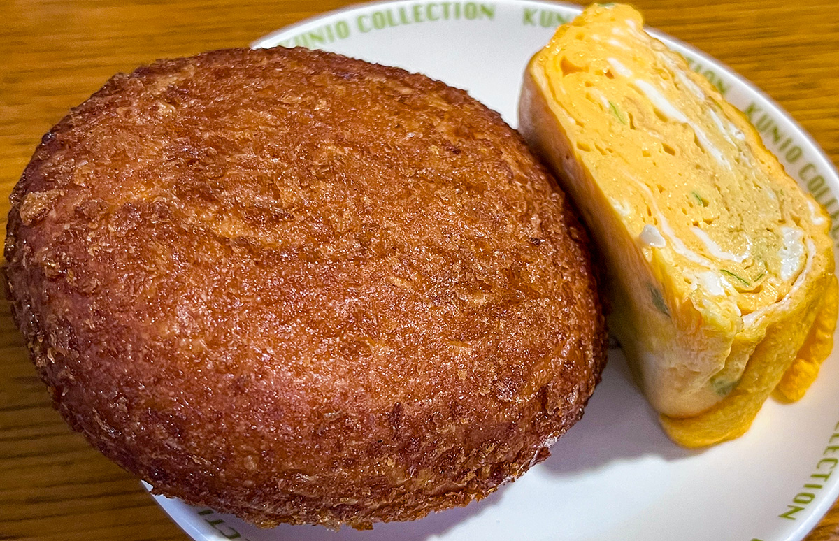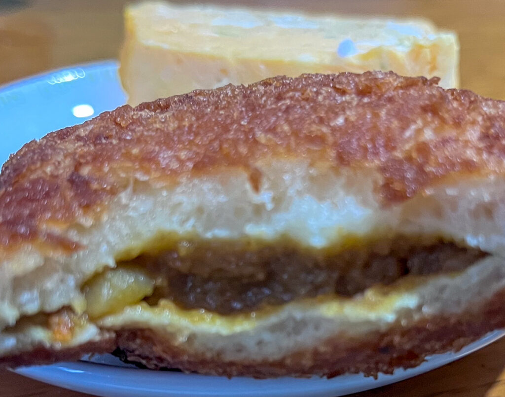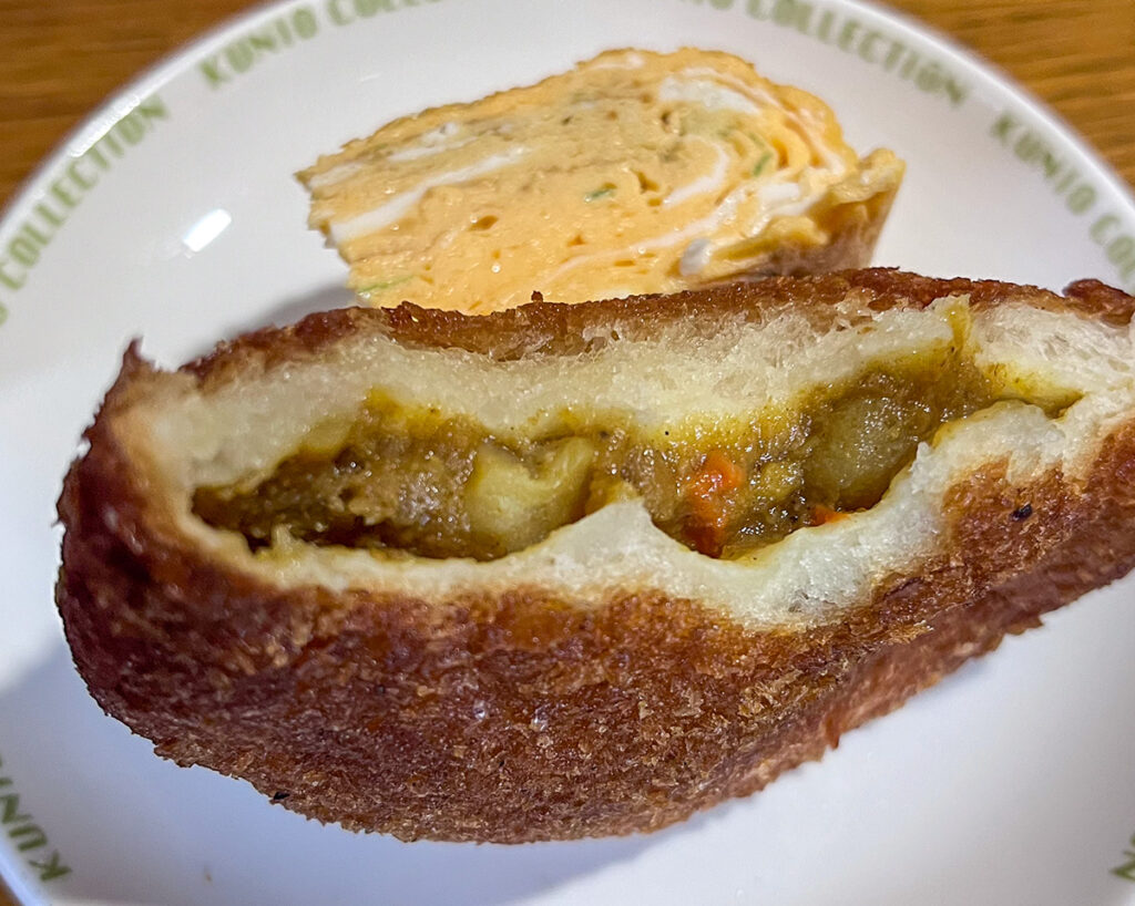 昨日、猪名川のグルメプラザで買ったカレーパンと玉子焼きのモーニング。