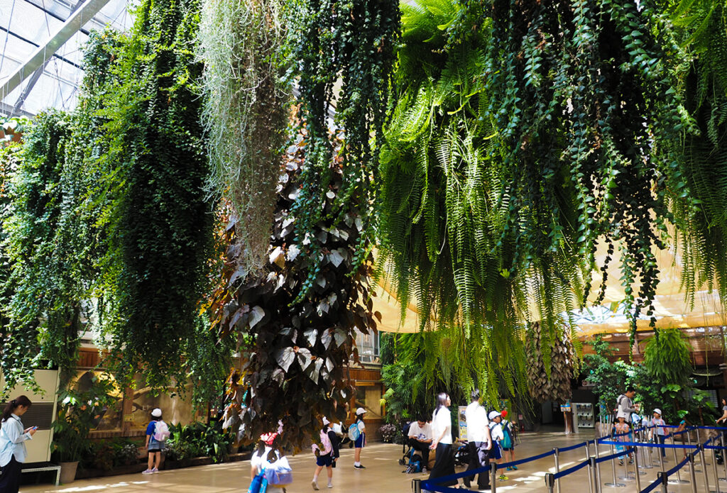 いろんな動物の生態が間近に見えるし、足元を鳥や猿たちが歩き回ったりする。
