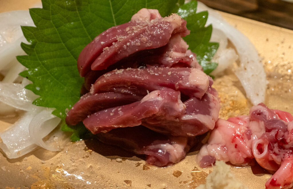 ハツは焼きしか食べたことなかったけど、刺身もコリコリっとして美味いし、とろぉりなレバーや歯触りのいい砂肝も美味い。