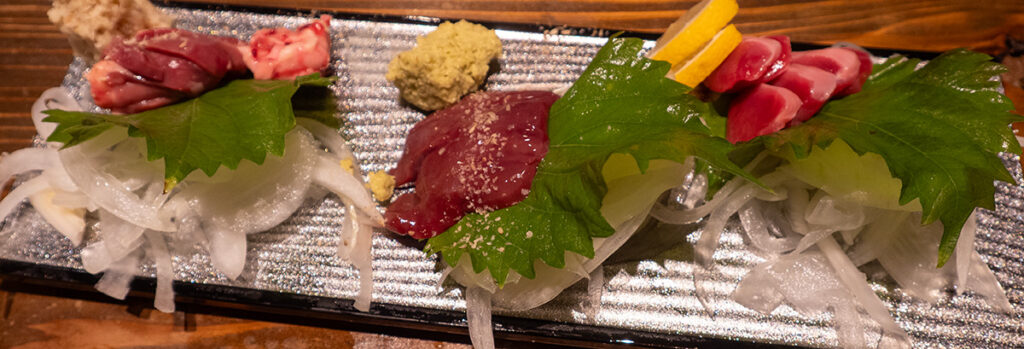 予約していたから出してもらったハツ、レバーに砂肝のお刺身。