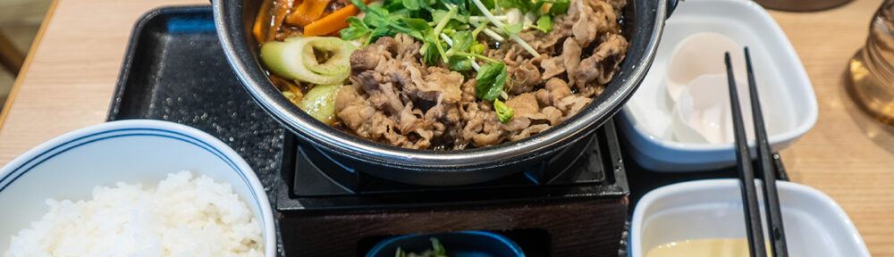 サーモンと味噌汁の焼き魚定食やカレーにもちょっと心惹かれるけど、やっぱり今日はすき焼きだな。