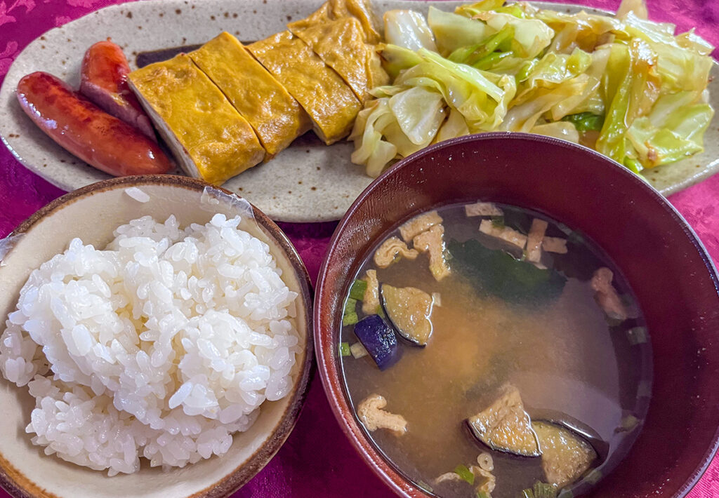 朝のバゲットもいいけど、和食な朝ごはんもいい。味噌汁もいいな。