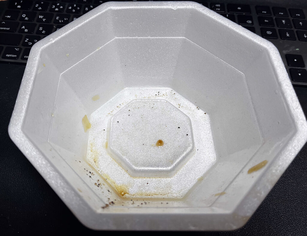 次回食べるなら丼に移してから作ってみよう。カップの蓋にお湯の目安量は400mlと書いてあるのもそれを勧めているのかも?