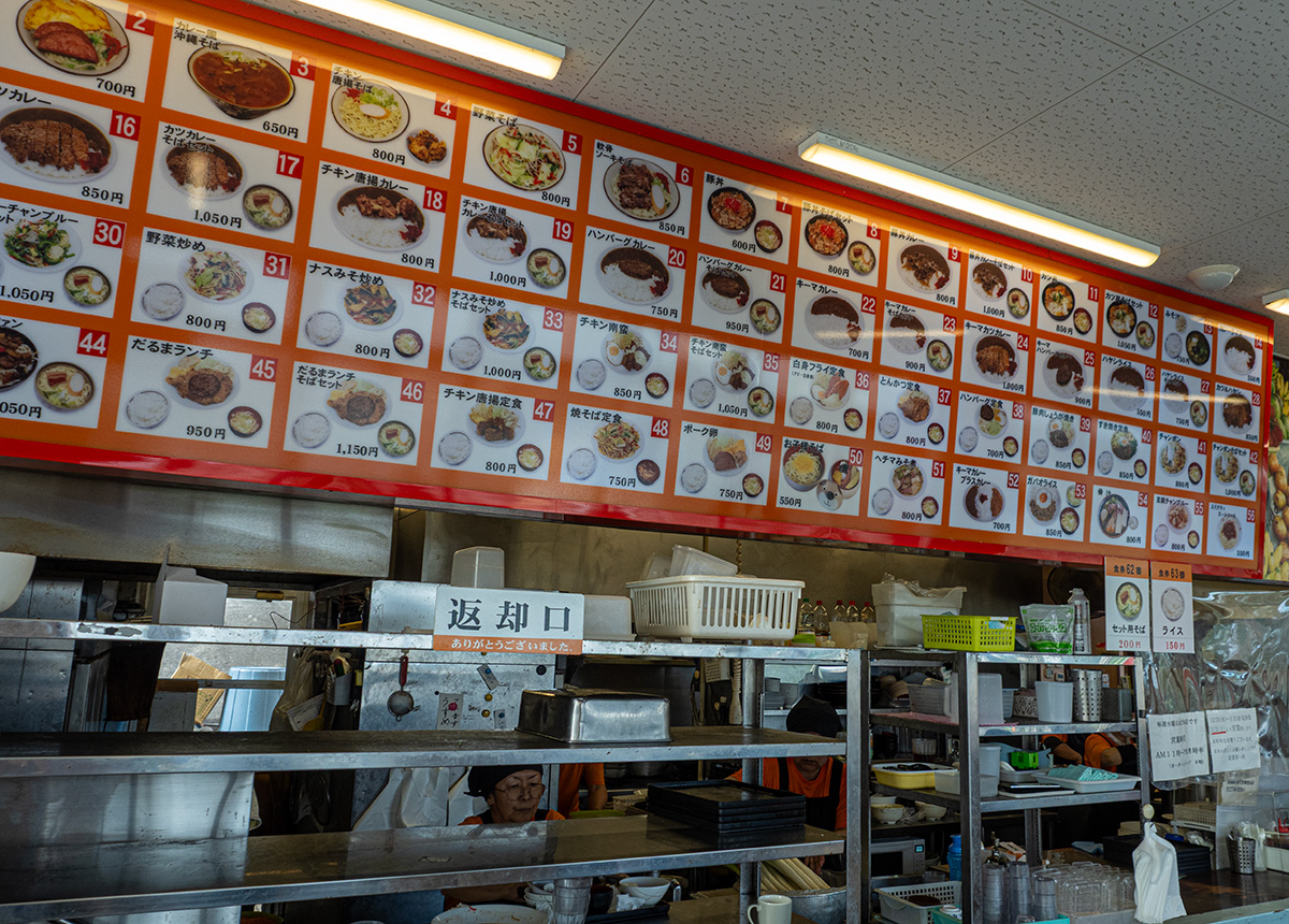 入り口を入ったとこにある券売機で買うんだけど、カウンターの上に写真つきのメニューがあるので、初めてだとそこでじっくり見るってのもいいかも。