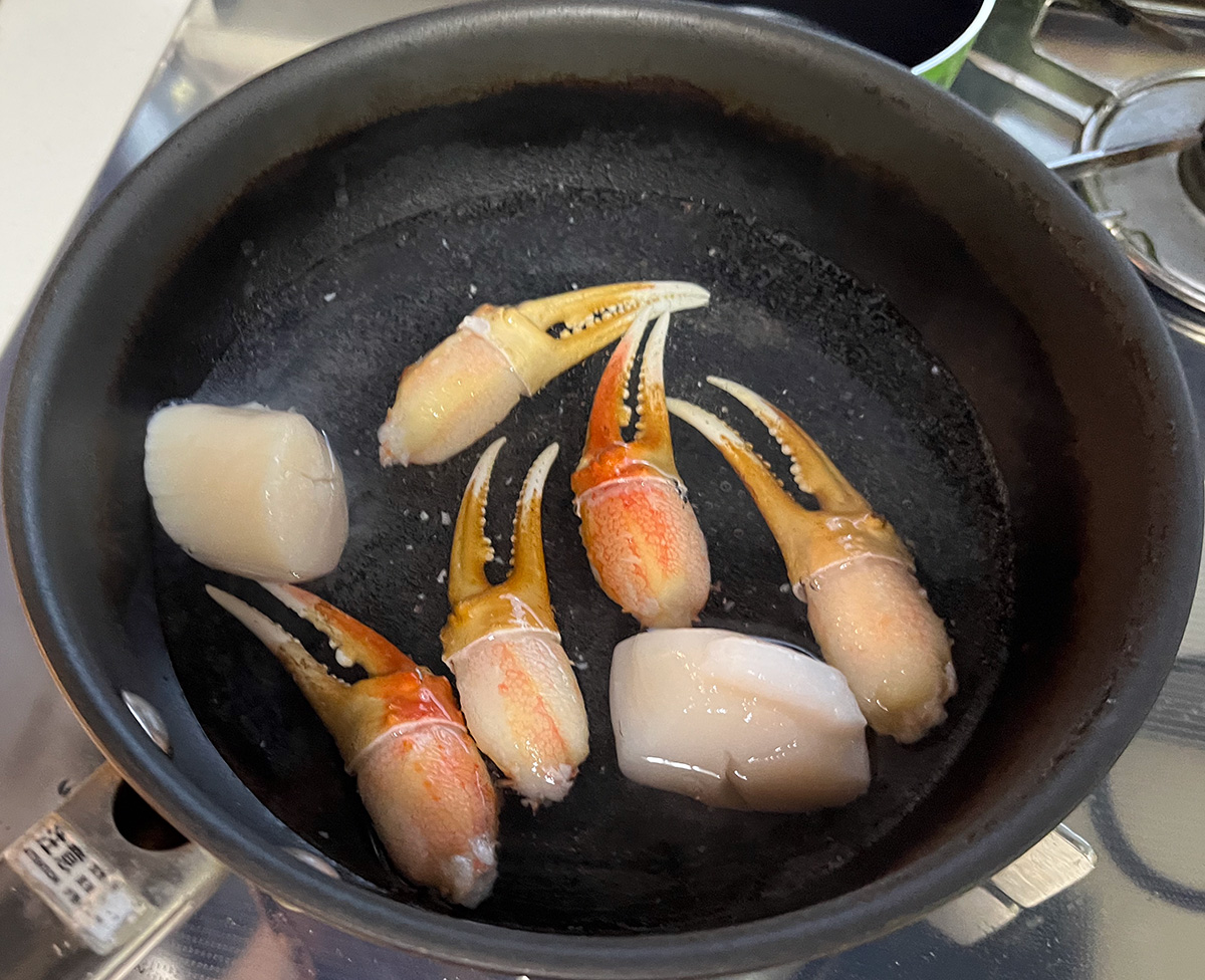 カニ爪とホタテをちょっと煮込んでだしをとったら、