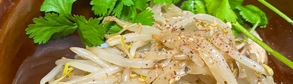 - チキンサラダとパクチーもやしポチギ