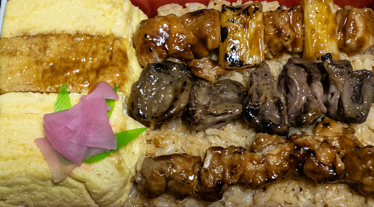 うまそうなので思わず買ってしまった手作り厚焼き玉子&三種の焼鳥重698円。