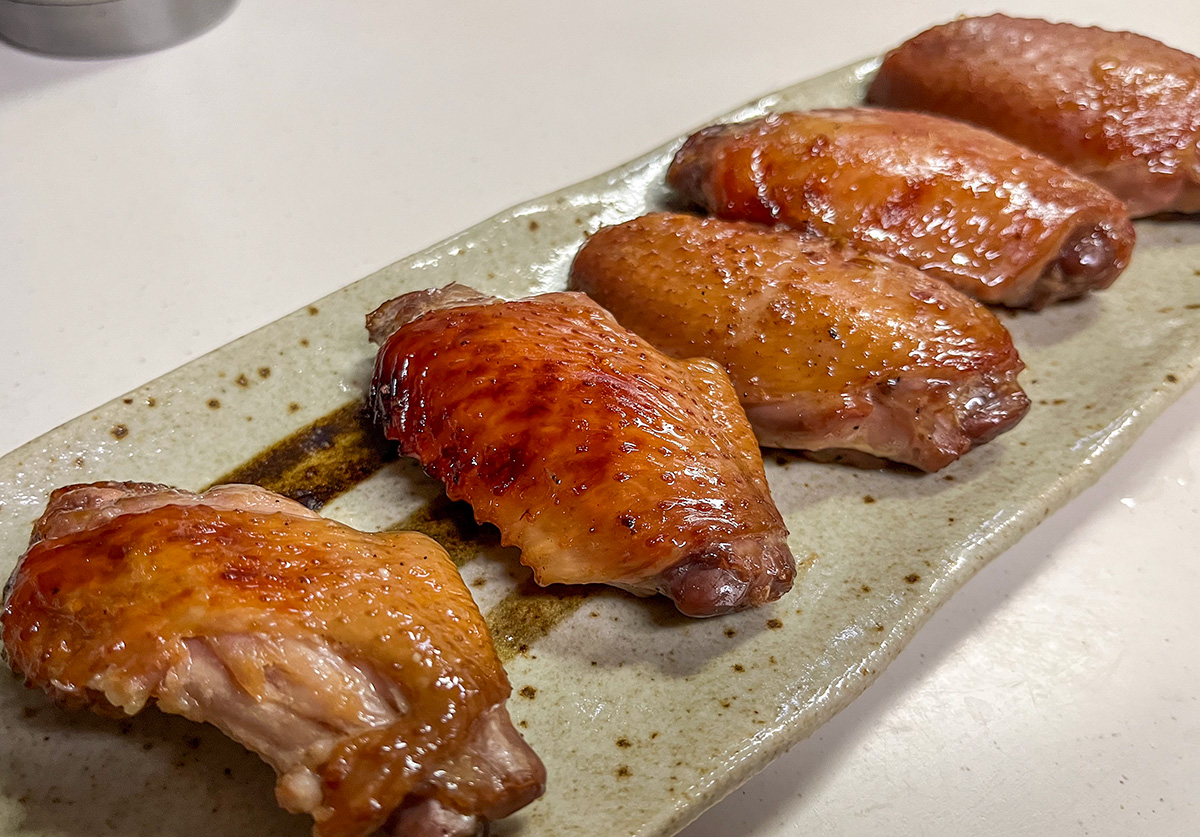 2、3日漬け込んだ手羽中を焼いてみた。手羽元や手羽先はよく売ってるんだけど。