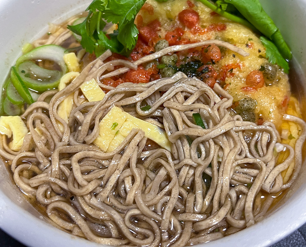 feb.28th sat. 2026 北のどん兵衛 天ぷらそば [北海道] 無性に食べたくなる味だ。 サックサクのあとのせ天ぷら。 鰹節と利尻昆布のWだし甘みのある醤油味。 麺は時々食べたくなるいつもの食感。 薄切りにした玉子焼きとパクチープラス。 懐かしくもあるうまさ。 蕎麦好きだけど、このカップ蕎麦も麺も好きだなぁ。 関連サイト:Facebook┃Twitter┃おきぐる┃Facebook┃Twitter┃おきぐる┃okinawaweb┃南風原タウン情報┃チーズ教室 ┃Okinawaweb Express┃mixi┃グシクムイ…