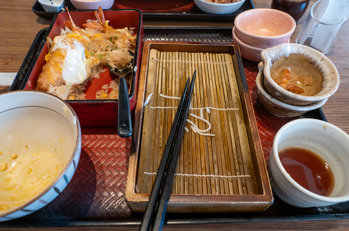oct.20th tue. 2020 新都心の沖銀での出張よろず相談、午前の部のあとはアップルタウンの大戸屋へ。 炭火焼き鶏の親子丼とせいろ蕎麦のセット。 確か1250円くらいだったかな。 考えたら安くないな(^ ^; 親子丼は鶏肉たっぷり。 ツユがよく染み込んだジューシーなご飯でボリュームたっぷり。 蕎麦もよく絞まっていて普通に美味い。 お腹いっぱいだ。 それにしてもカメラのオートフォーカスの調子が悪いな。ピンとが合わないと思ったら、レンズがマニュアルになっていた(^ ^; 一緒だった人はサバの炭火焼き定食。これも美味そうだ(^…