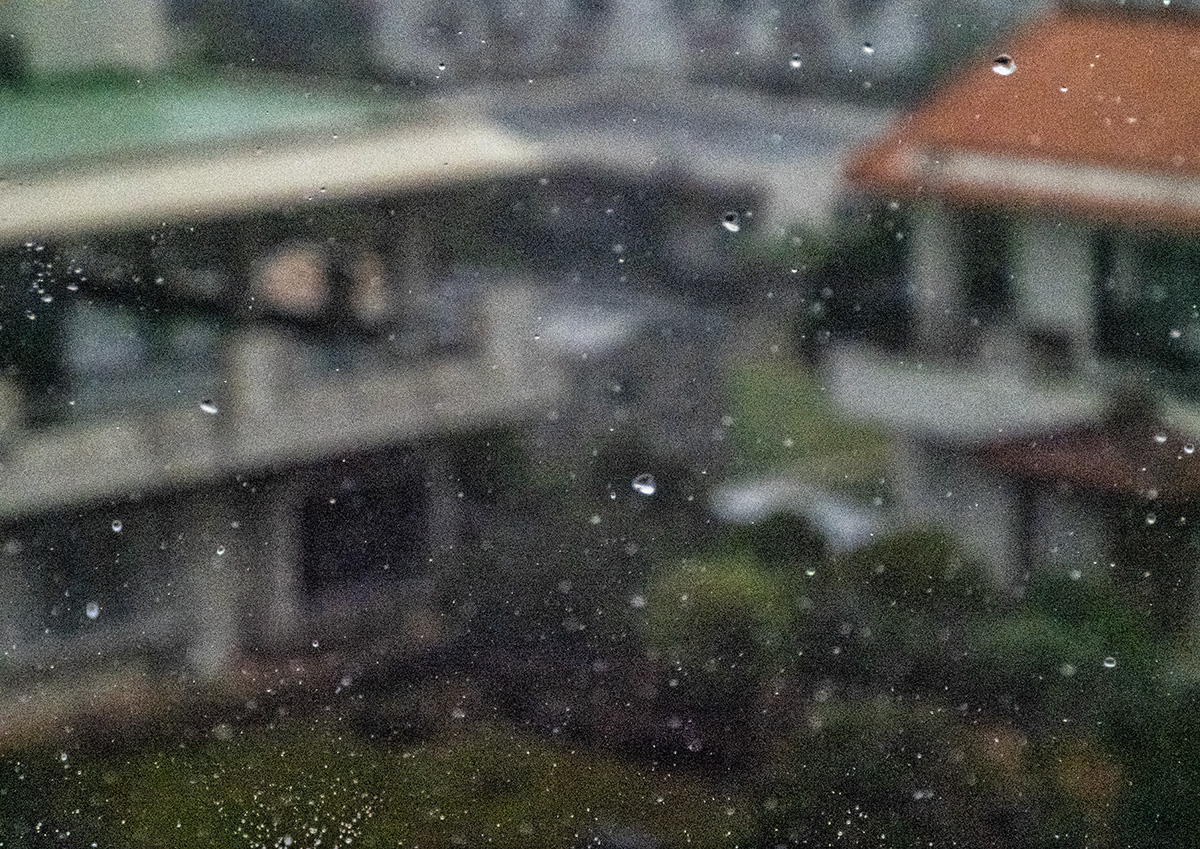 静止する雨粒。雨降りもいいね。