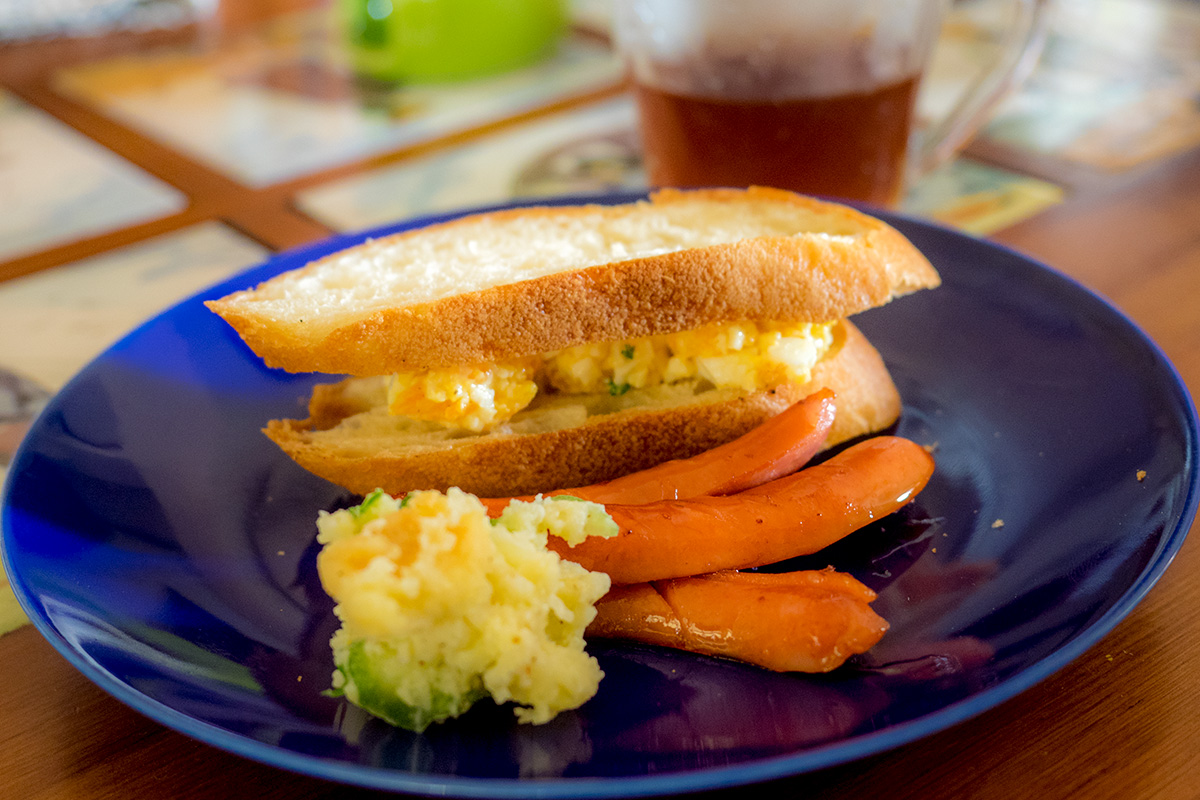 私はソーセージをはさんで食べるけど妻はタマゴだけの方がお好みのようだ。