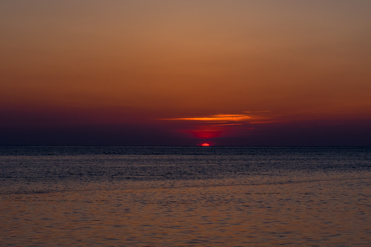 が、今回は違った。水平線に沈む夕陽は久しぶりに見たなぁ。