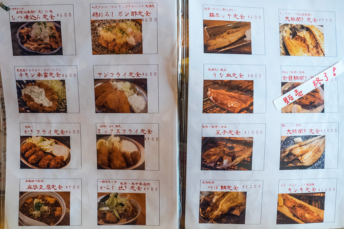 限定に弱い私は、一日限定5食 創業以来継ぎ足しの味もつ煮込み定食600円 にカキフライ2つを追加して+200円。