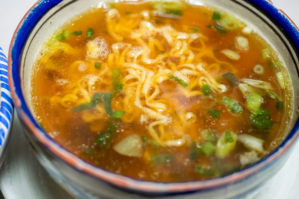 分け方は、卵を割って、黄身だけを麺の方にいれ、残りの白身をスープの方へ。