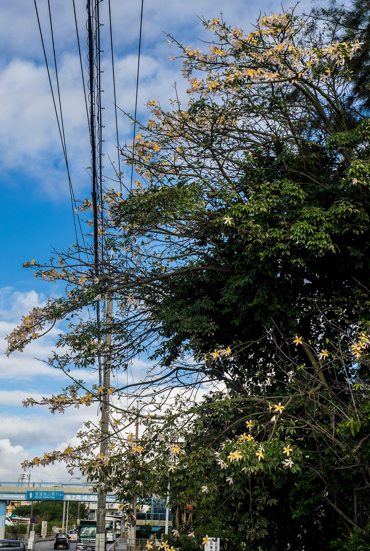 先日、南の駅やえせに行く時に東風平小学校のとこで見かけた覚えがある白いトックリキワタ。