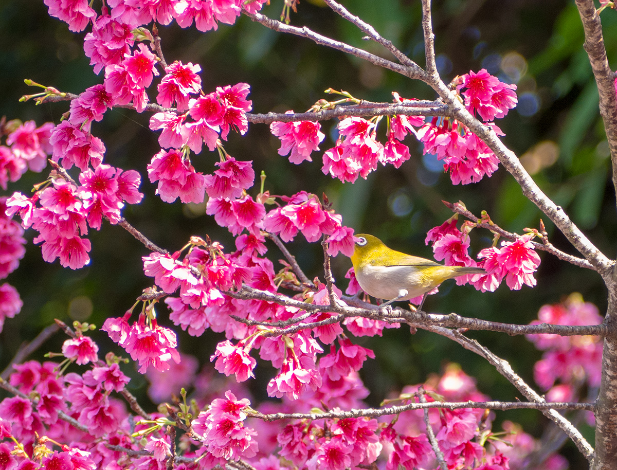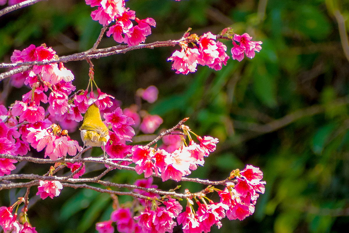メジロが蜜を飲むのにとても忙しそうだ(^^