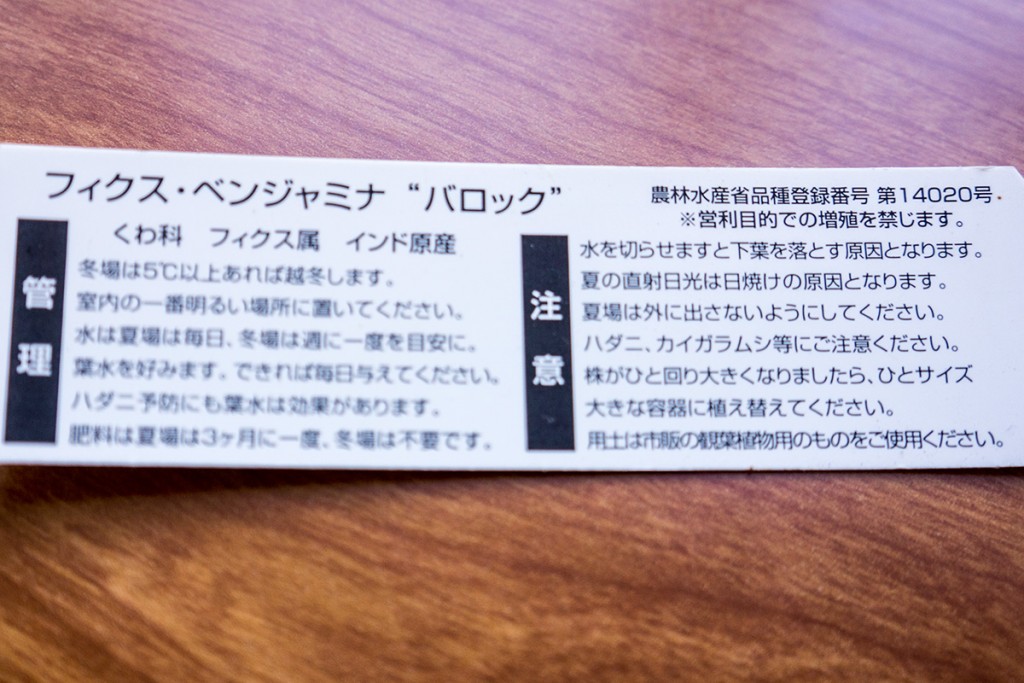 なんだろうと思って見ると、フィクス・ベンジャミナ・バロックというクワ科の植物のようだ。