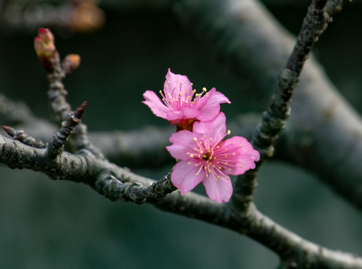 緋寒桜にもソメイヨシノのような淡い色のもあったりする。
