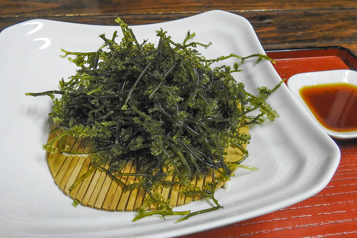 ステーキにそばを食べたあとだったので、ボリュームのありそうなそばは今日はやめて朝採れの海ぶどうをチョイス。