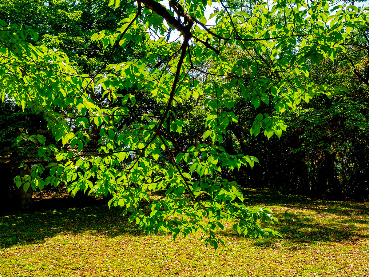 桜の葉が光に透けてきれいだ。桜の季節にまた来たいな。緑の桜見もいいね。
