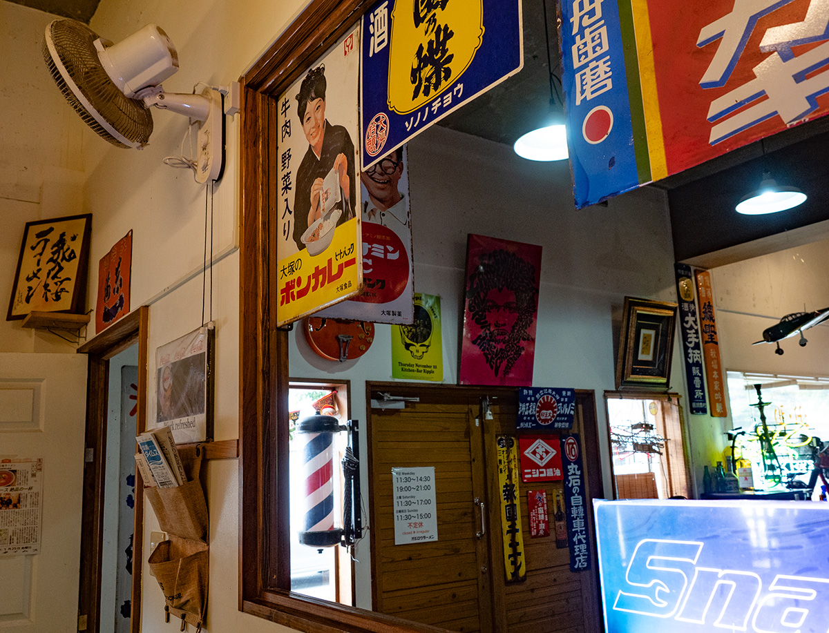 昭和レトロな看板たちと懐かしのグッズに囲まれて落ち着く雰囲気。
