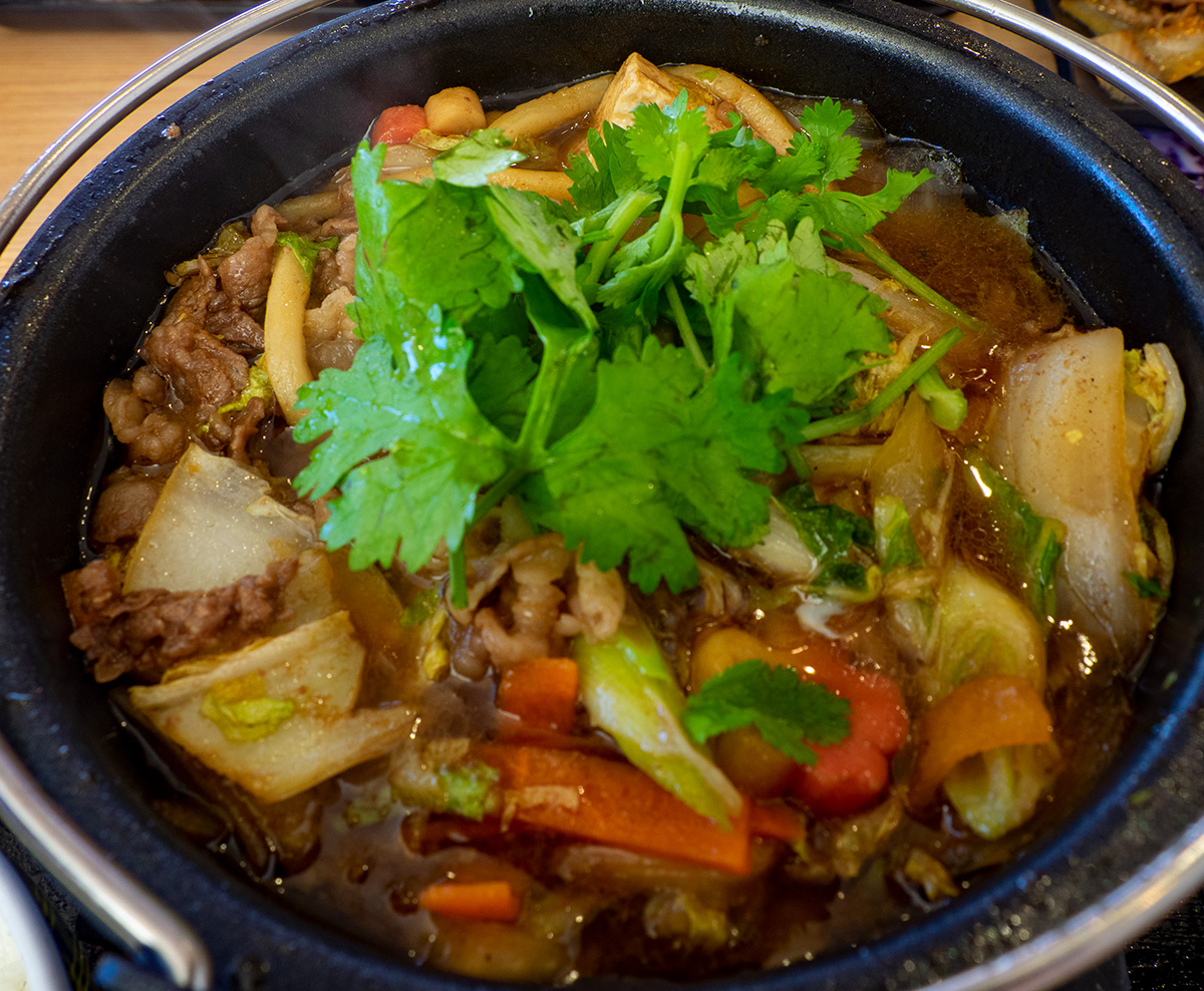 普通の牛好きでもいいかと思ったけど、めったにこれないし、ここは期間限定の黒毛和牛すき鍋膳にしてみよう。税抜きで998円。