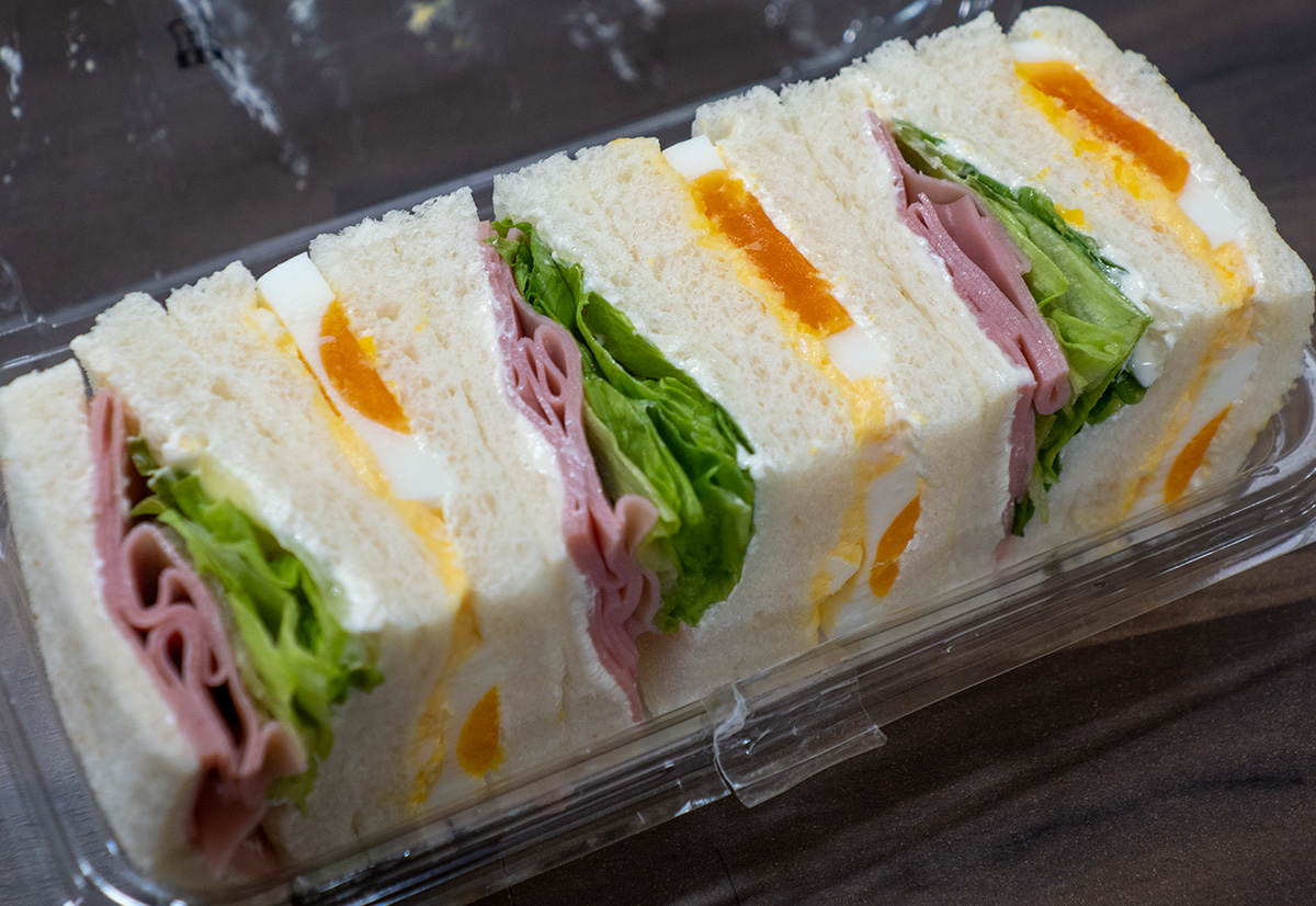 たまごサンド、レタスハムサンドの2種類が交互に配置されている。