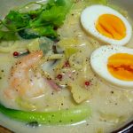 June 17th wed. 2020 長崎ちゃんぽん発祥の中華料理店「四海樓」監修のチャンポンで早めの夕食。 (adsbygoogle = window.adsbygoogle || []).push({}); 冷凍なんだけど、そのまま鍋にいれて温めるだけの簡単さ。 最近のは具とスープを別々に調理したりするけど、これは確かに簡便だ。 キャベツ、ね)、かまぼこ、ボイルいか、きくらげ、ボイルえびが入っているけど、新たに冷凍エビに青梗菜と白菜にパクチーとゆで卵にメンマをブラスした。 仕上げは黒胡椒とピンクペッパーで。 モチモチっとした麺にはコシもあるし、鶏ガラと豚骨をブレンドした白湯スープは、甘さがあってまろやかでコクもあって美味い。…