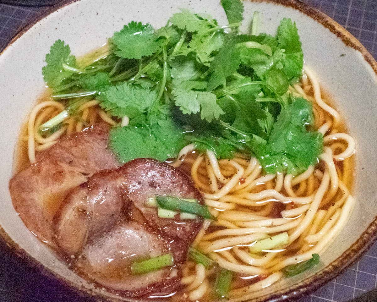 日清のラーメン屋さんのしょうゆでチャーシューパクチーラーメン