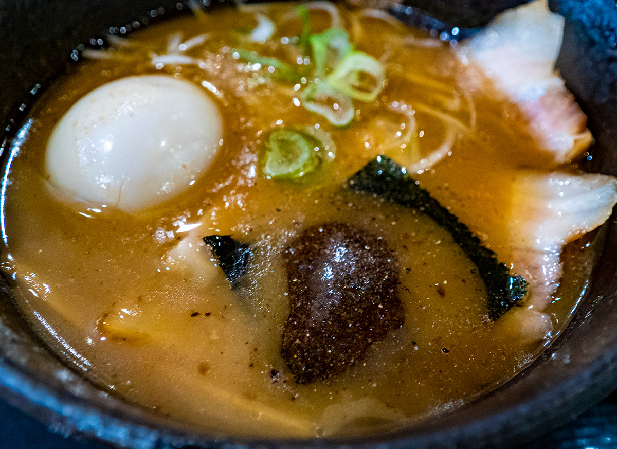 豚骨スープをベースにした煮干しなど十種類以上の食材で作るの魚介スープは濃厚。